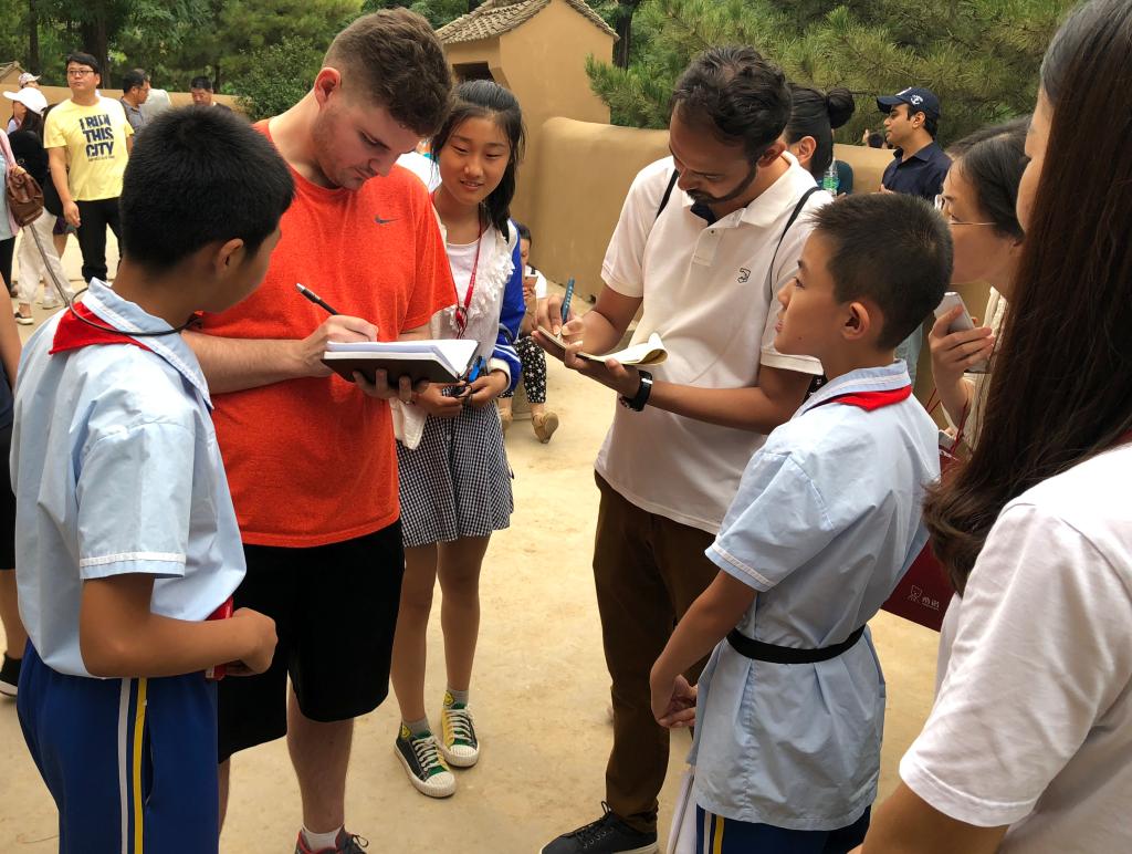 第二天,我处张杰老师带领西工大留学生们参观了杨家岭革命遗址及枣园,对大生产运动、整风运动和“七大”做了生动全面的讲解。留学生们对于红军在如此艰苦的环境中能够取得革命的胜利表示十分震惊和感慨。参观期间,受延安实验小学学生、小小讲解员的邀请,留学生们写下了他们的观后感以及对延安精神的深刻领悟。