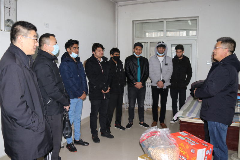 今天是农历的除夕日,上午9时许,副校长杨伟宏在党政办、工会等相关部门负责人的陪同下,在留学生公寓看望并慰问了在校留学生,向他们致以新春的祝福和亲切的问候,并给他们带去了慰问品。