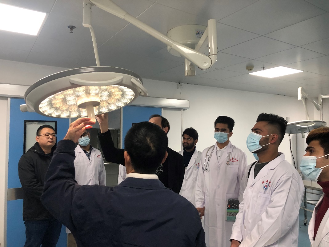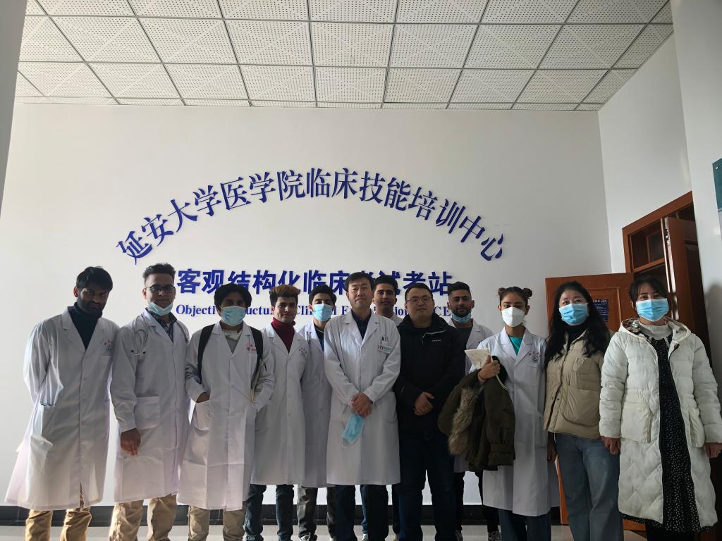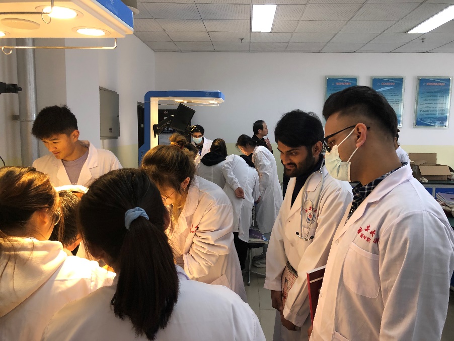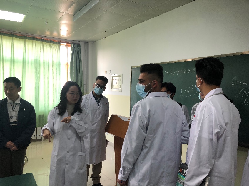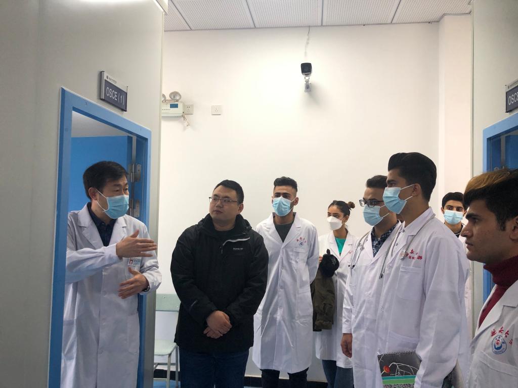 最后留学生们参观了临床技能培训中心,杨江伟主任讲解了客观结构化临床技能考试流程,向留学生们强调了临床理论应用能力和临床技能学习的重要意义,勉励他们勤奋学习,弘扬伟大的白求恩精神。