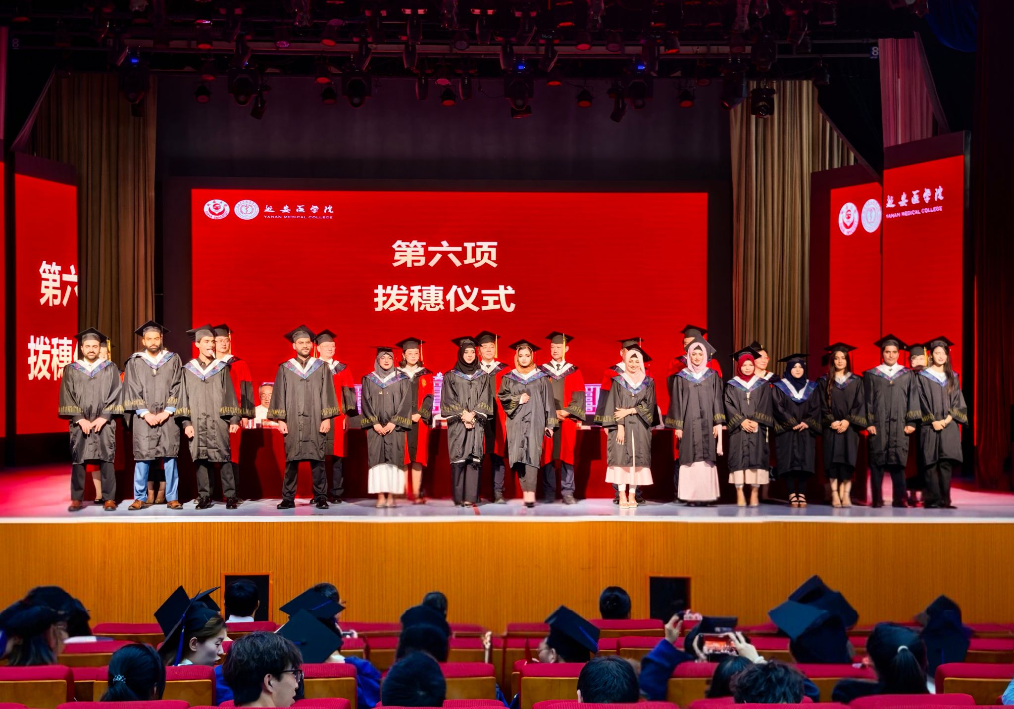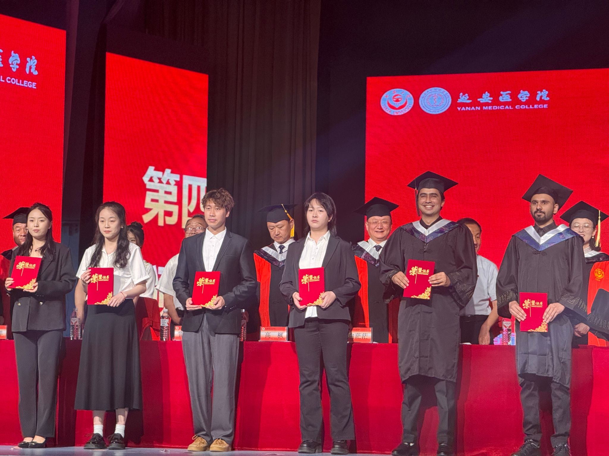 典礼上,延安医学院基础医学院院长高枫详细介绍了2025届毕业生的情况。MILE米乐集团2020级临床医学(汉语授课)专业的43名国际学生表现优异,均圆满完成培养方案规定的教学与实践任务,其中9名学生成功通过国内硕士研究生入学申请,1名学生荣获全额政府奖学金,彰显了国际学生在学术追求上的卓越成果。