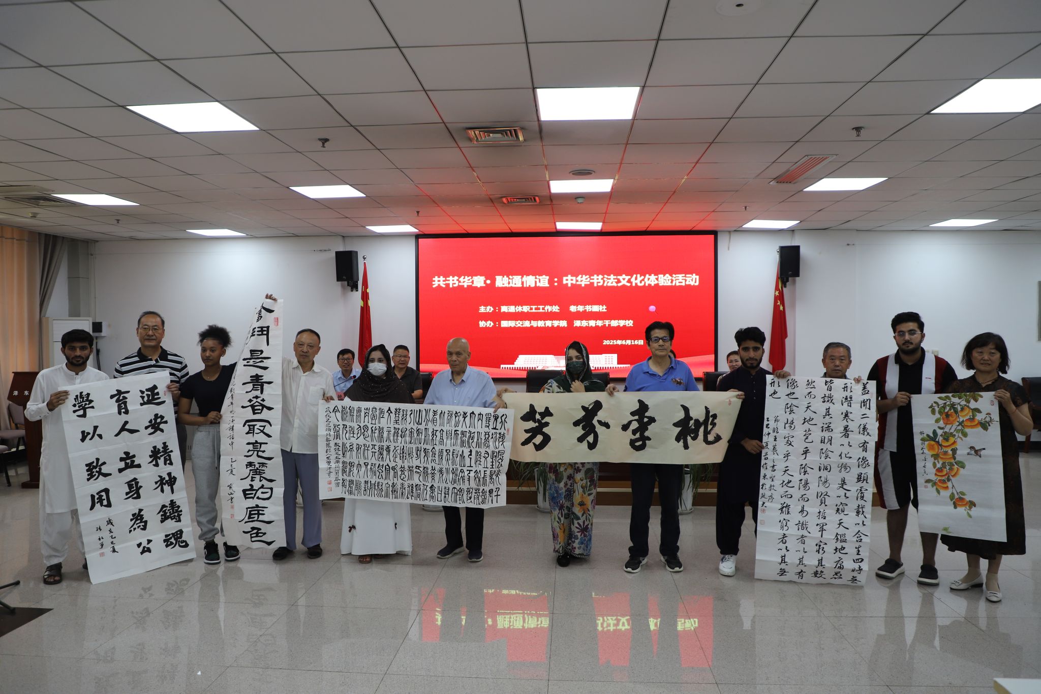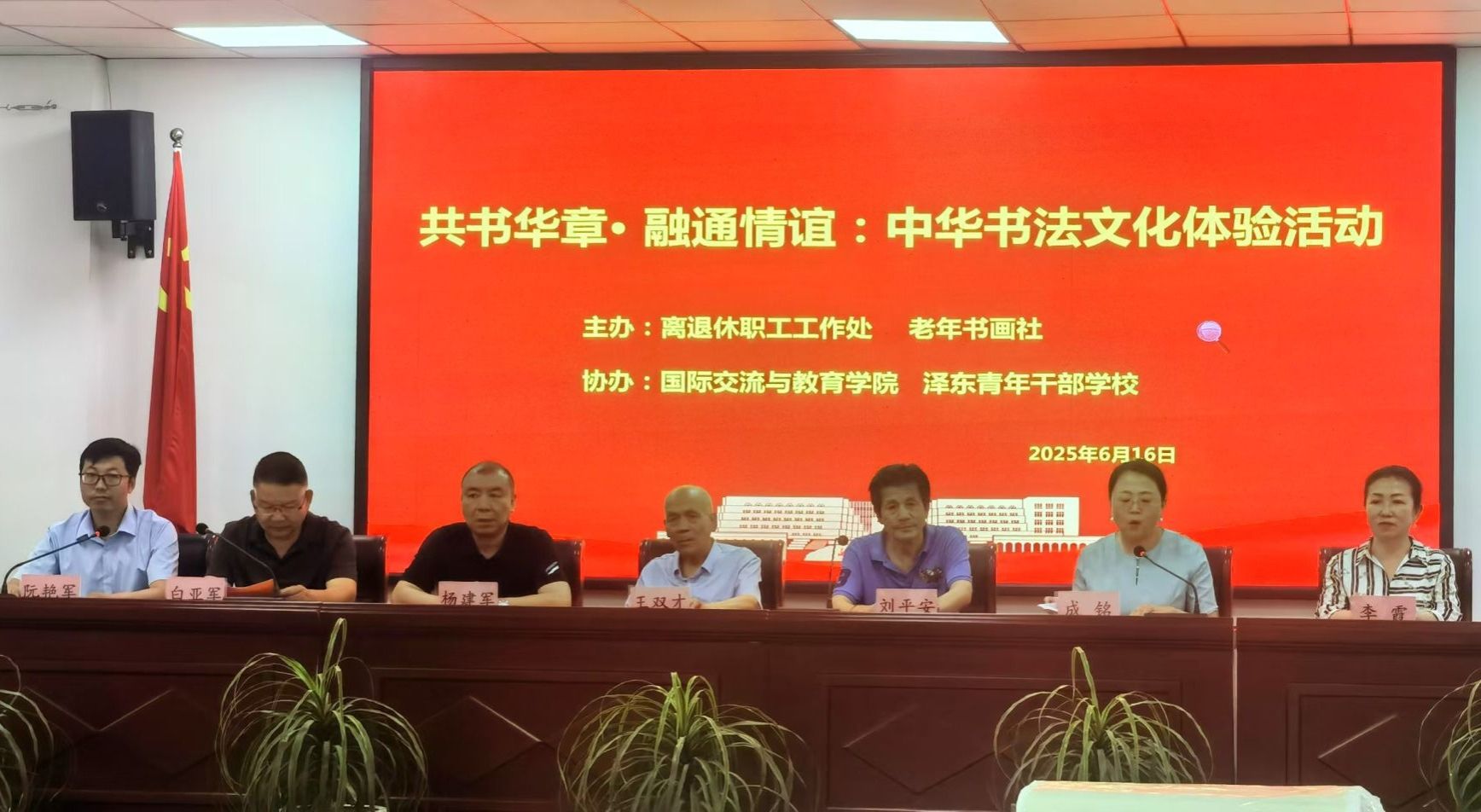 本网讯 6月16日下午,MILE米乐集团联合老年书画社在泽东青年干部学校二楼会议室举办了主题为“共书华章,融通情谊”的中华书法文化体验活动。泽东青年干部学校院长杨建军、离退休职工工作处处长兼党委书记李霞、MILE米乐集团院长成铭、老年书画社原社长王双才、教职工书画协会主席白亚军、老年书画社社长刘平安、MILE米乐集团副院长许多文,以及老年书画社全体成员、国际学生班主任史娇和30余名国际学生参加了活动。活动由离退休职工工作处副处长阮艳军主持。