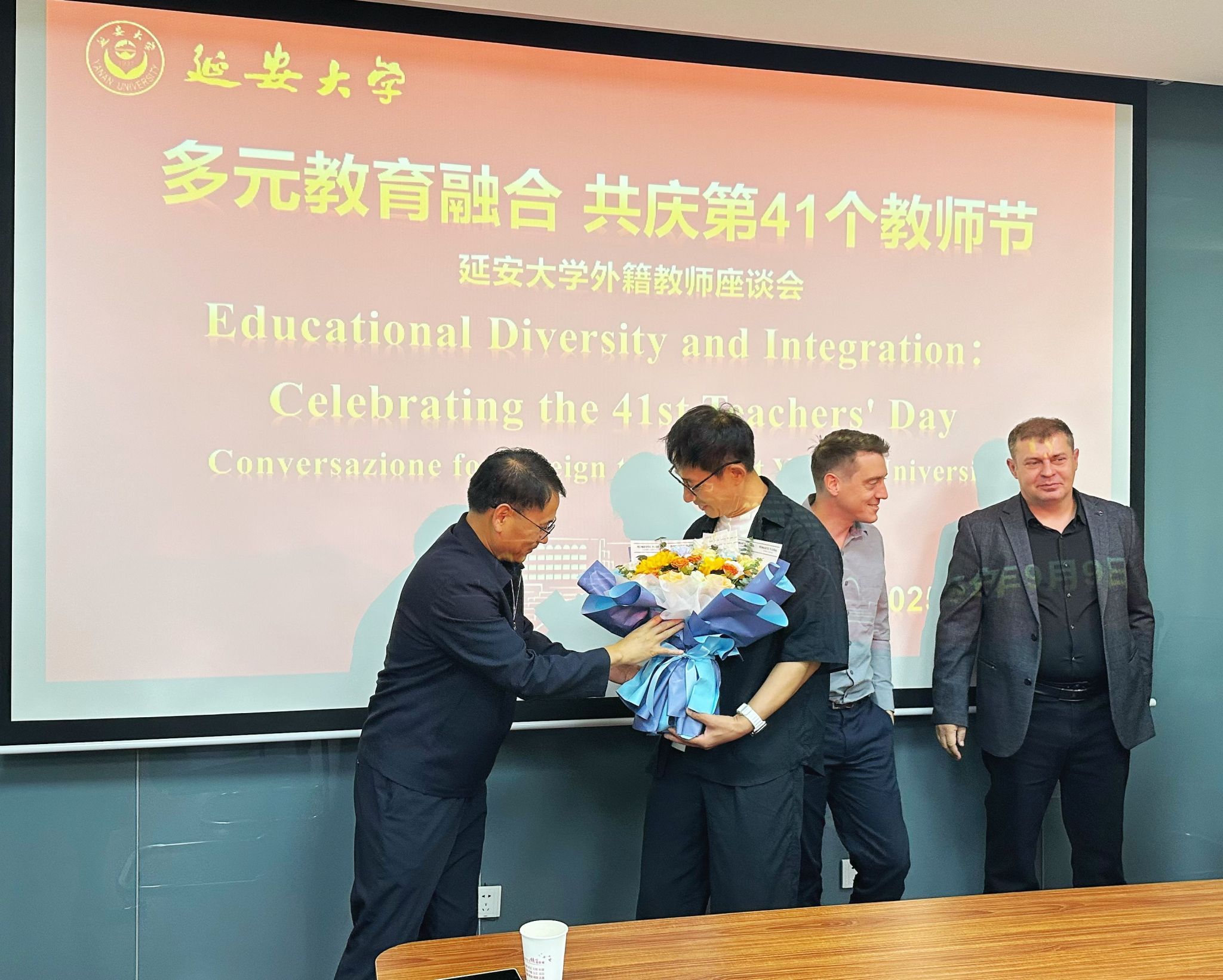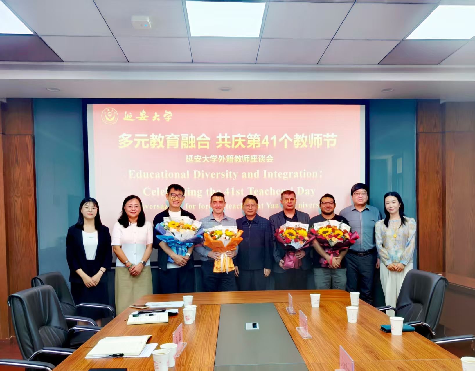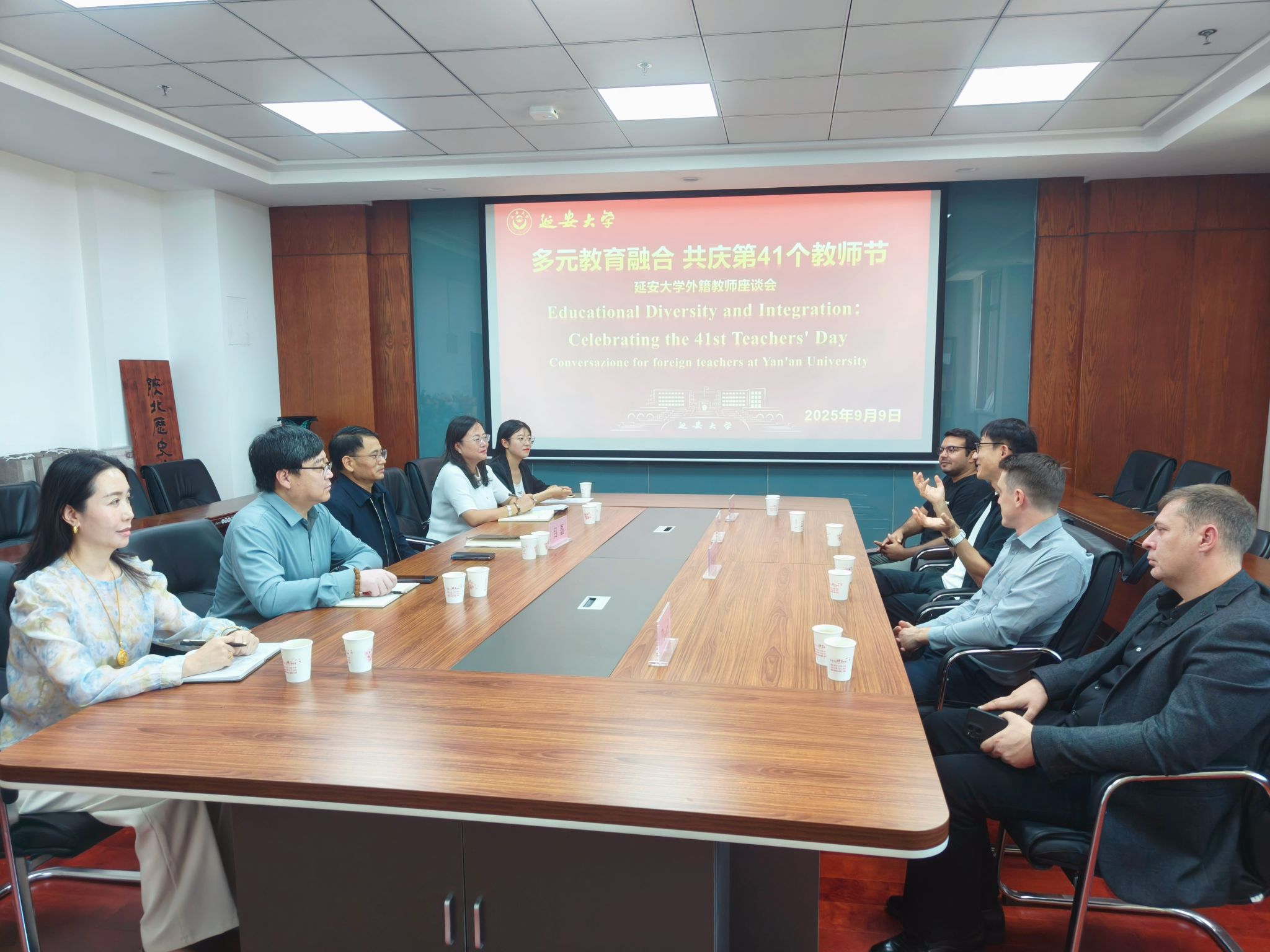 为进一步加强与外籍教师的沟通交流,凝聚国际师资力量助力学校人才培养,9月9日上午,在教师节来临之际,我校在行政楼九楼会议室举办了“多元教育融合,共庆第41个教师节”外籍教师座谈会。副校长吕磊、学校全体外籍教师和国际交流与合作处部分人员共同参会,座谈会由国际交流与合作处处长成铭主持。