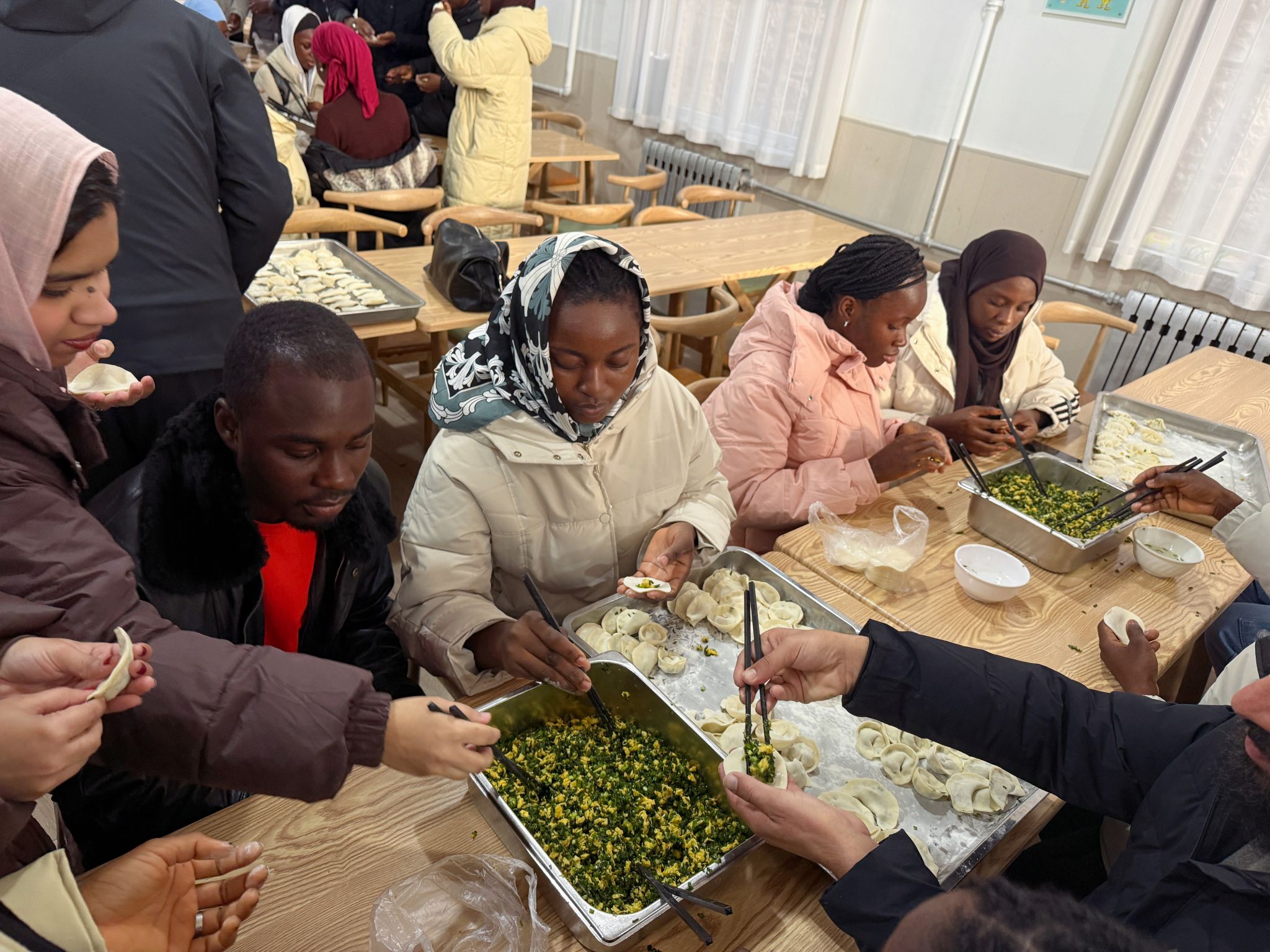 随着一个个形态各异的饺子整齐地摆放在托盘里,大家的成就感油然而生。当热气腾腾的饺子端上桌时,浓郁的香气瞬间弥漫整个场地。留学生们迫不及待地品尝着自己亲手包的饺子,脸上洋溢着幸福的笑容。大家围坐在一起,分享着美食,交流着各自国家的节日习俗,在轻松愉快的氛围中拉近了彼此的距离。