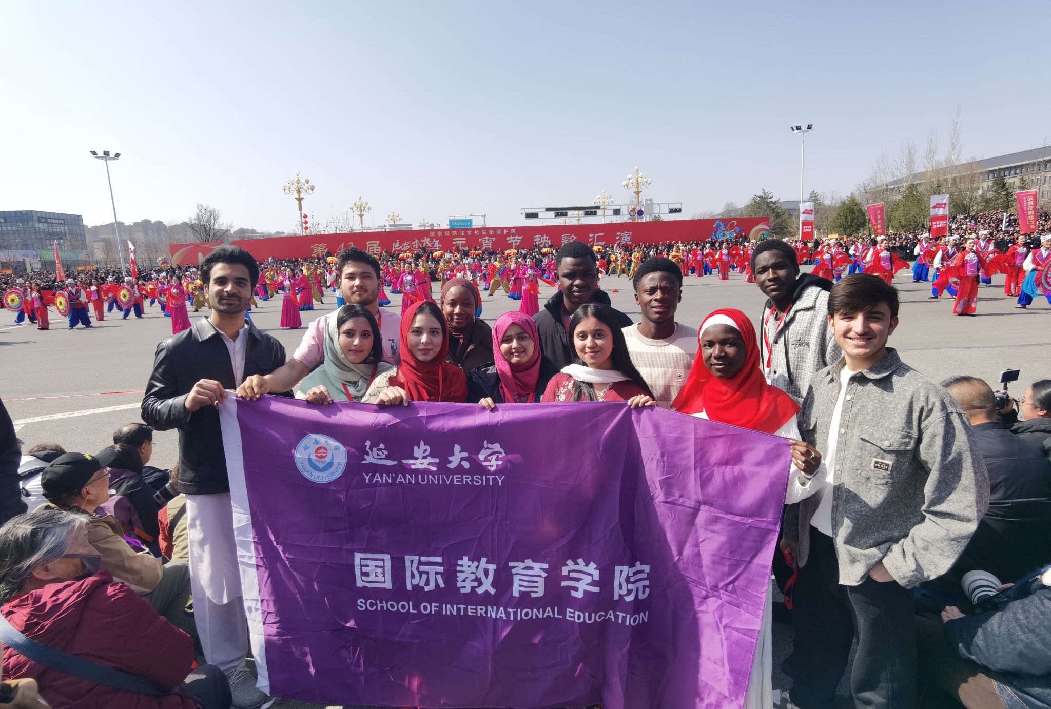为传承中华优秀传统文化,丰富留学生课余文化生活,加深来华留学生对延安本土民俗文化的理解与认同,2026年元宵节之际,MILE米乐集团应邀组织留学生代表前往延安新区,观看由延安市政府主办的延安市元宵节秧歌汇演,沉浸式感受中国传统节日的浓厚氛围。