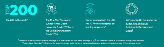 埃克塞特大学(University of Exeter,简称Exon)是英国一所顶尖的公立研究型大学,成立于1955年,为罗素大学集团成员,其商学院获得了AACSB、EQUIS和AMBA三重认证。在2025年QS世界大学排名中位列第169位,2024年泰晤士世界大学排名第177位,U.S. News 2024-2025全球大学排名第122名。该校位于英国西南部德文郡和康沃尔郡,拥有优美的花园式校园,被誉为“英国最美校园”之一,在校生来自全球130多个国家,知名校友包括《哈利·波特》作者J·K·罗琳。